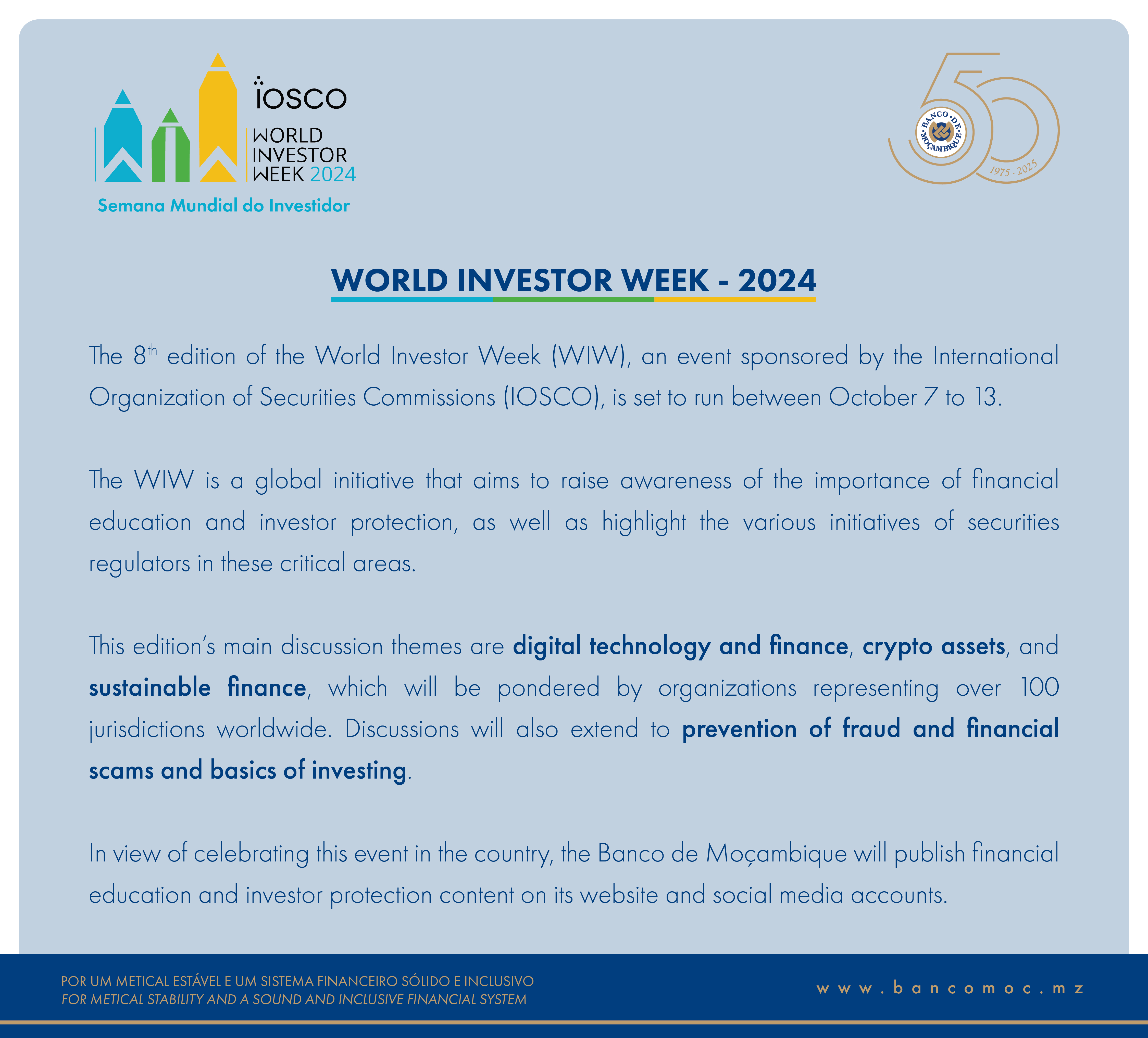 BANCO DE MOÇAMBIQUE CELEBRATES THE WORLD INVESTOR WEEK