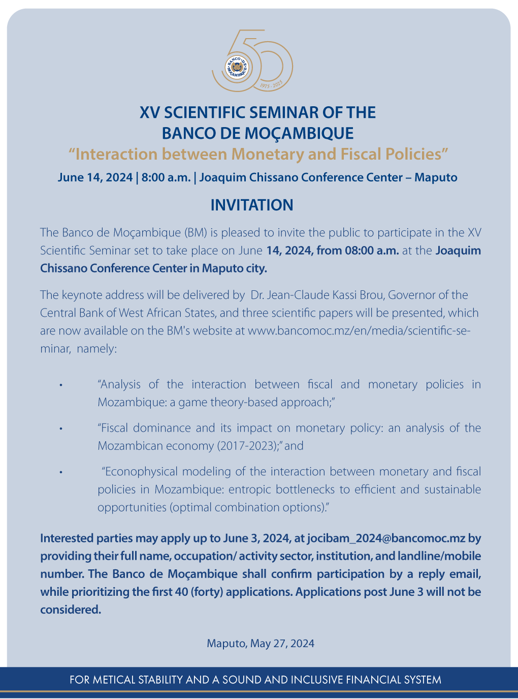 BANCO DE MOÇAMBIQUE EXTENDS PUBLIC INVITATION TO XV SCIENTIFIC SEMINAR