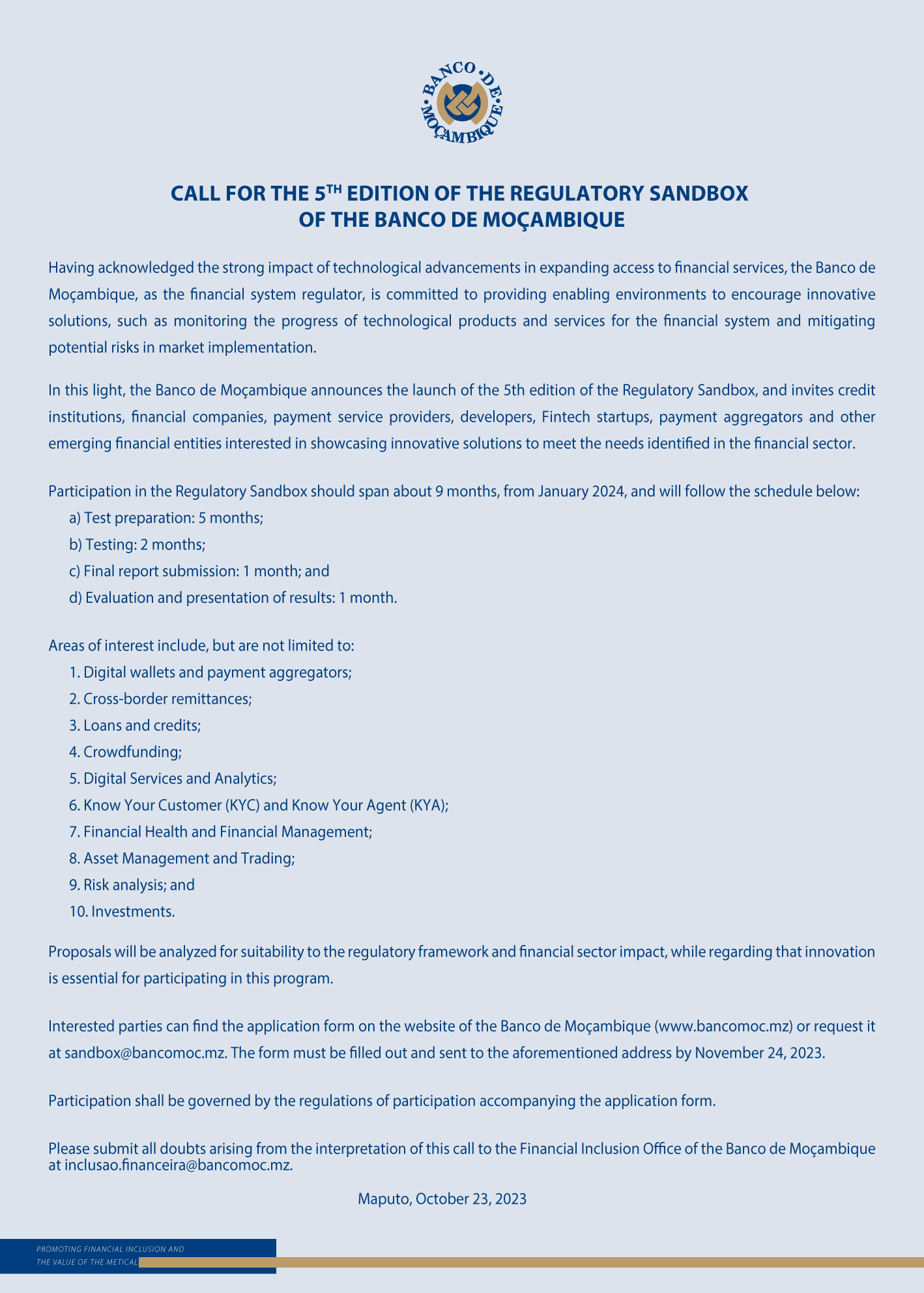 CALL FOR THE 5TH EDITION OF THE REGULATORY SANDBOX