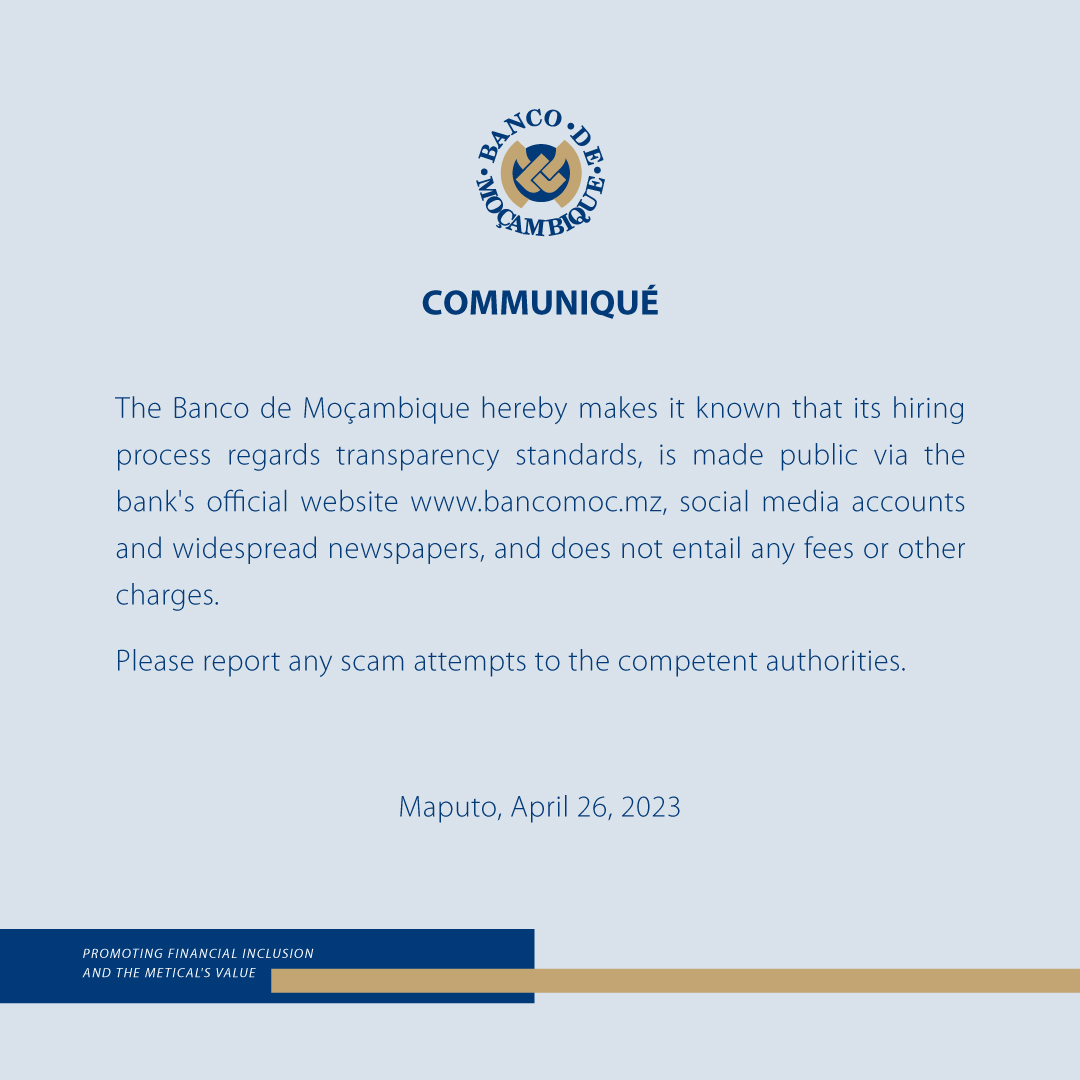 COMMUNIQUÉ ON THE HIRING PROCESS OF THE BANCO DE MOÇAMBIQUE