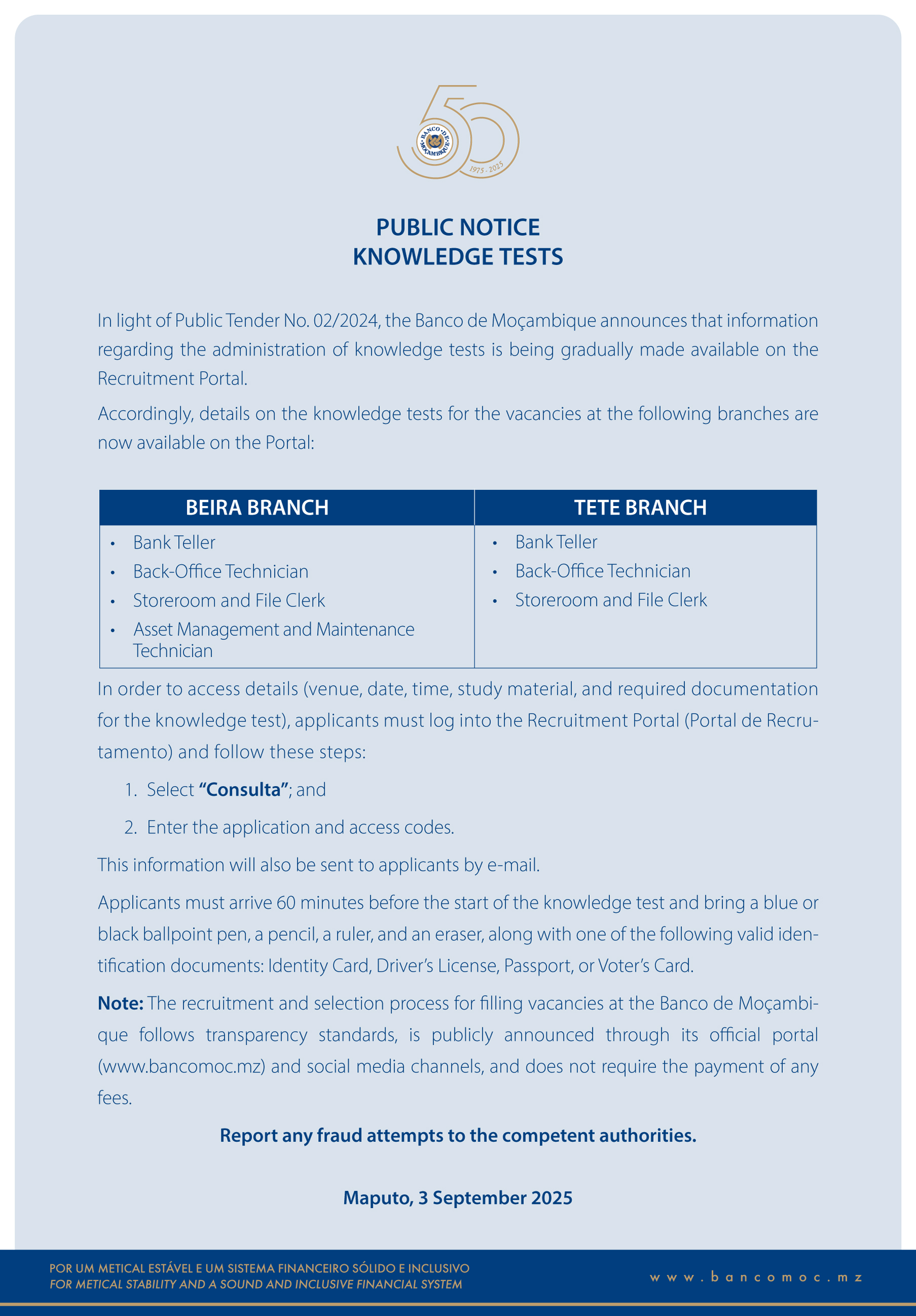 KNOWLEDGE TESTS – PUBLIC TENDER No. 02/2024