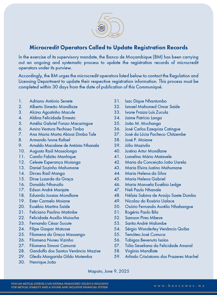 MICROCREDIT OPERATORS CALLED TO UPDATE REGISTRATION RECORDS