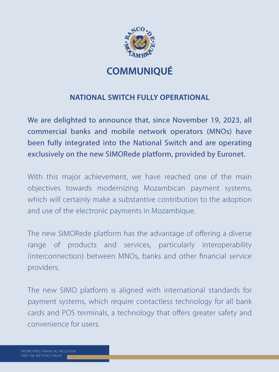 NATIONAL SWITCH FULLY OPERATIONAL