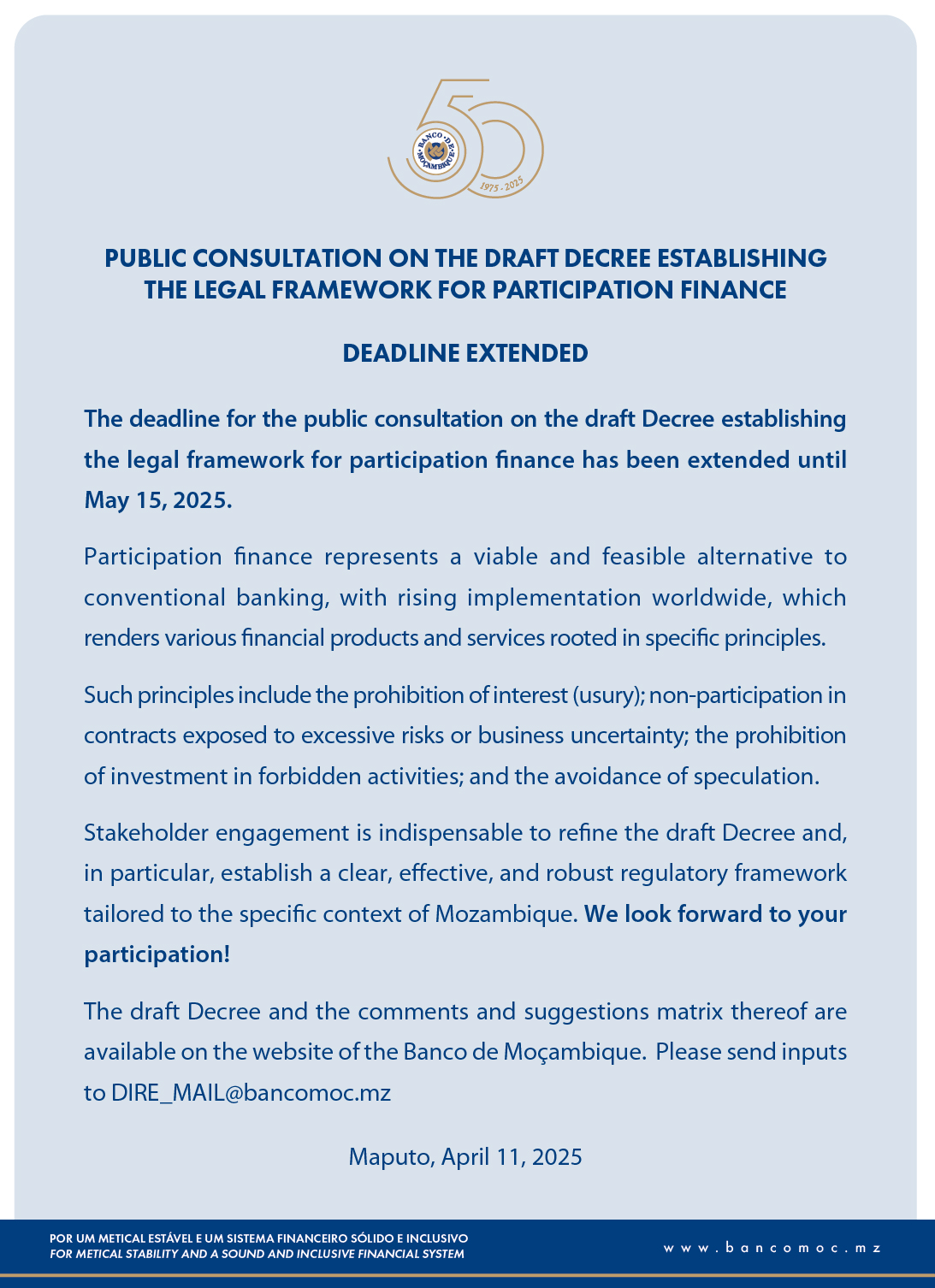 PUBLIC CONSULTATION ON THE DRAFT DECREE ESTABLISHING THE LEGAL FRAMEWORK FOR PARTICIPATION FINANCE