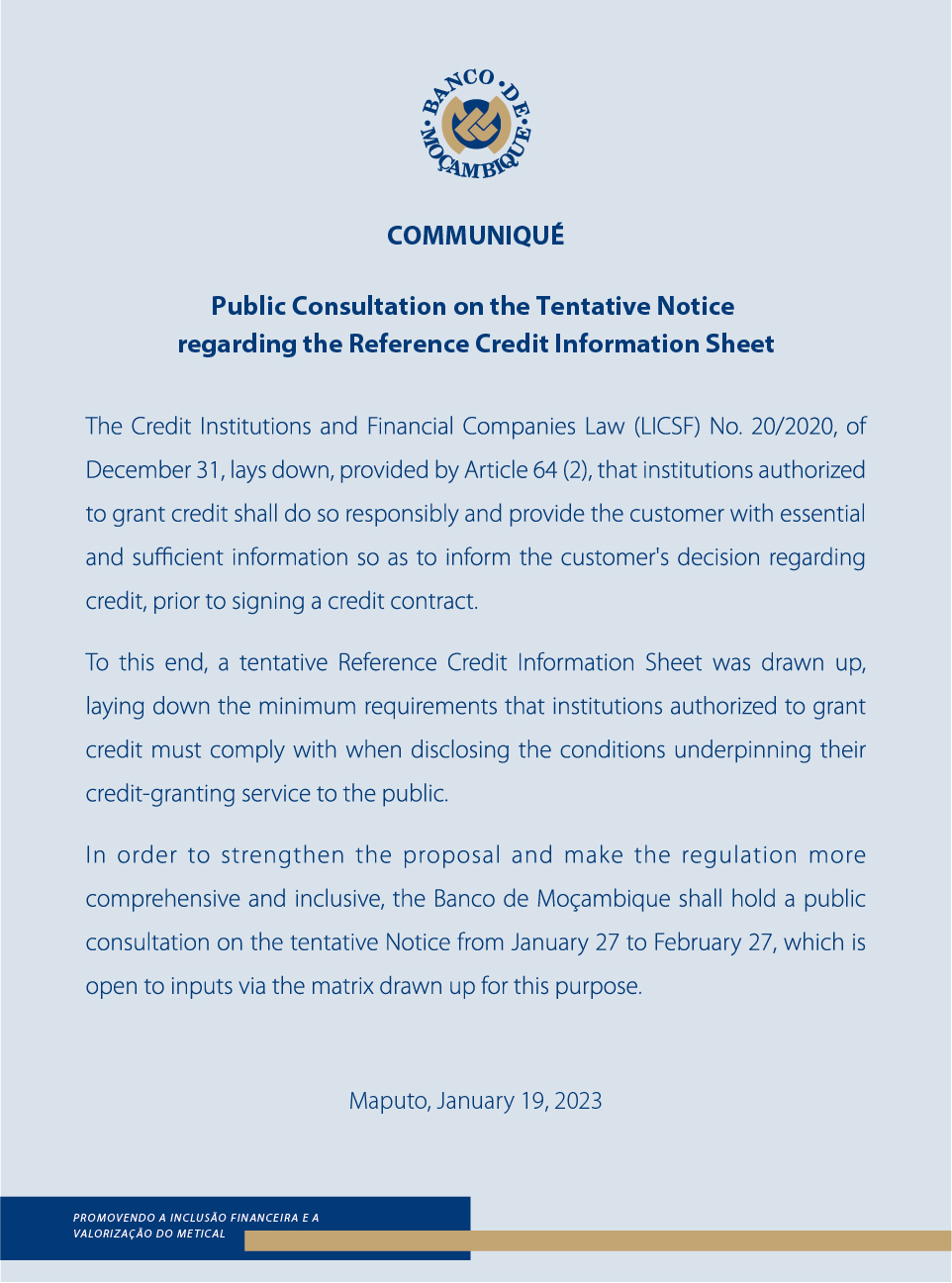 Proposta de Aviso sobre a Ficha de Informação Normalizada de Crédito 21.12.2022