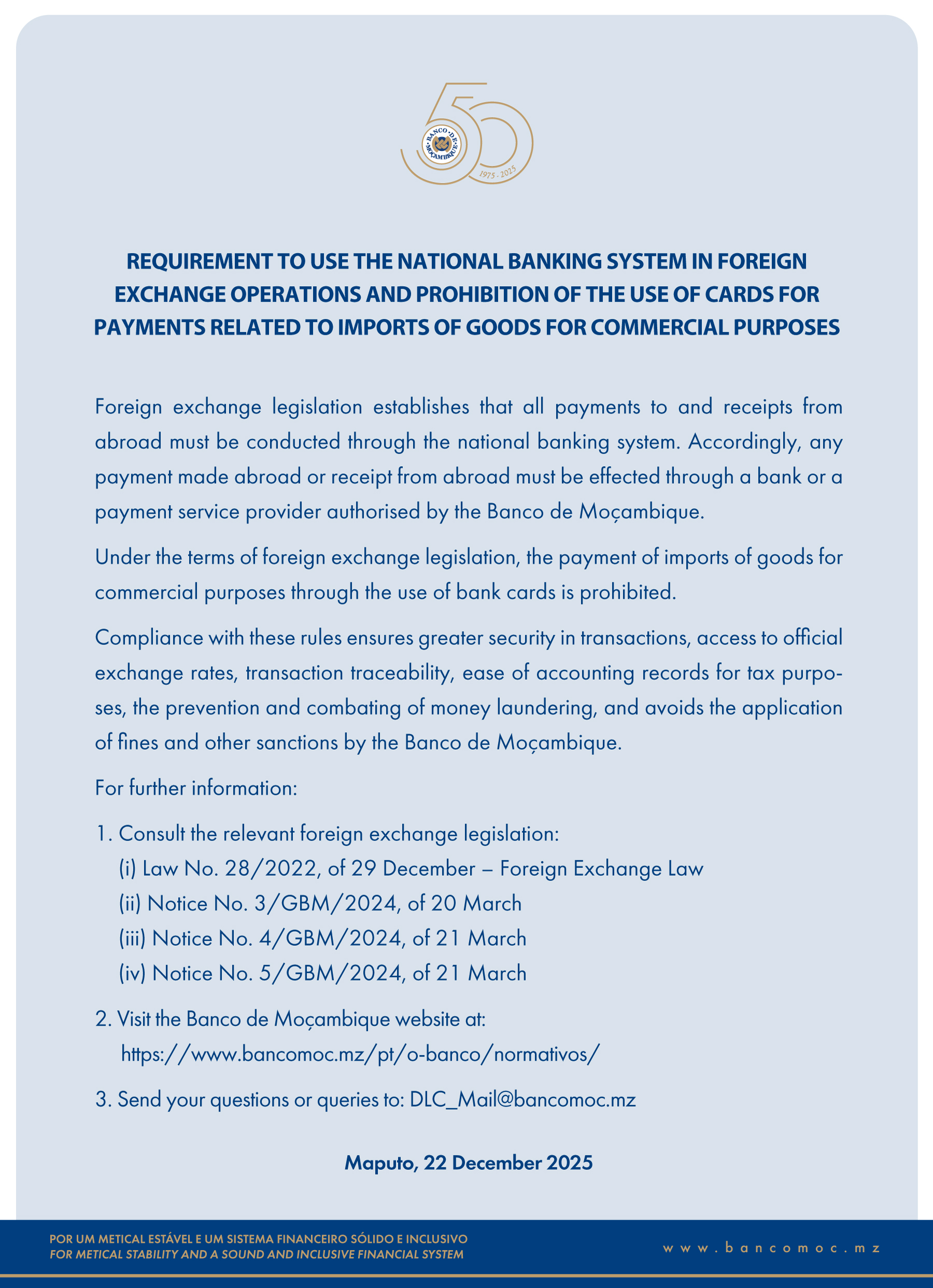 REQUIREMENT TO USE THE NATIONAL BANKING SYSTEM IN FOREIGN EXCHANGE OPERATIONS AND PROHIBITION OF THE USE OF CARDS FOR PAYMENTS RELATED TO IMPORTS OF GOODS FOR COMMERCIAL PURPOSES