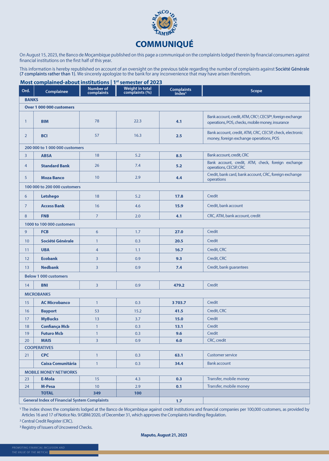 STATISTICS ON THE MOST COMPLAINED-ABOUT INSTITUTIONS - FIRST HALF OF 2023