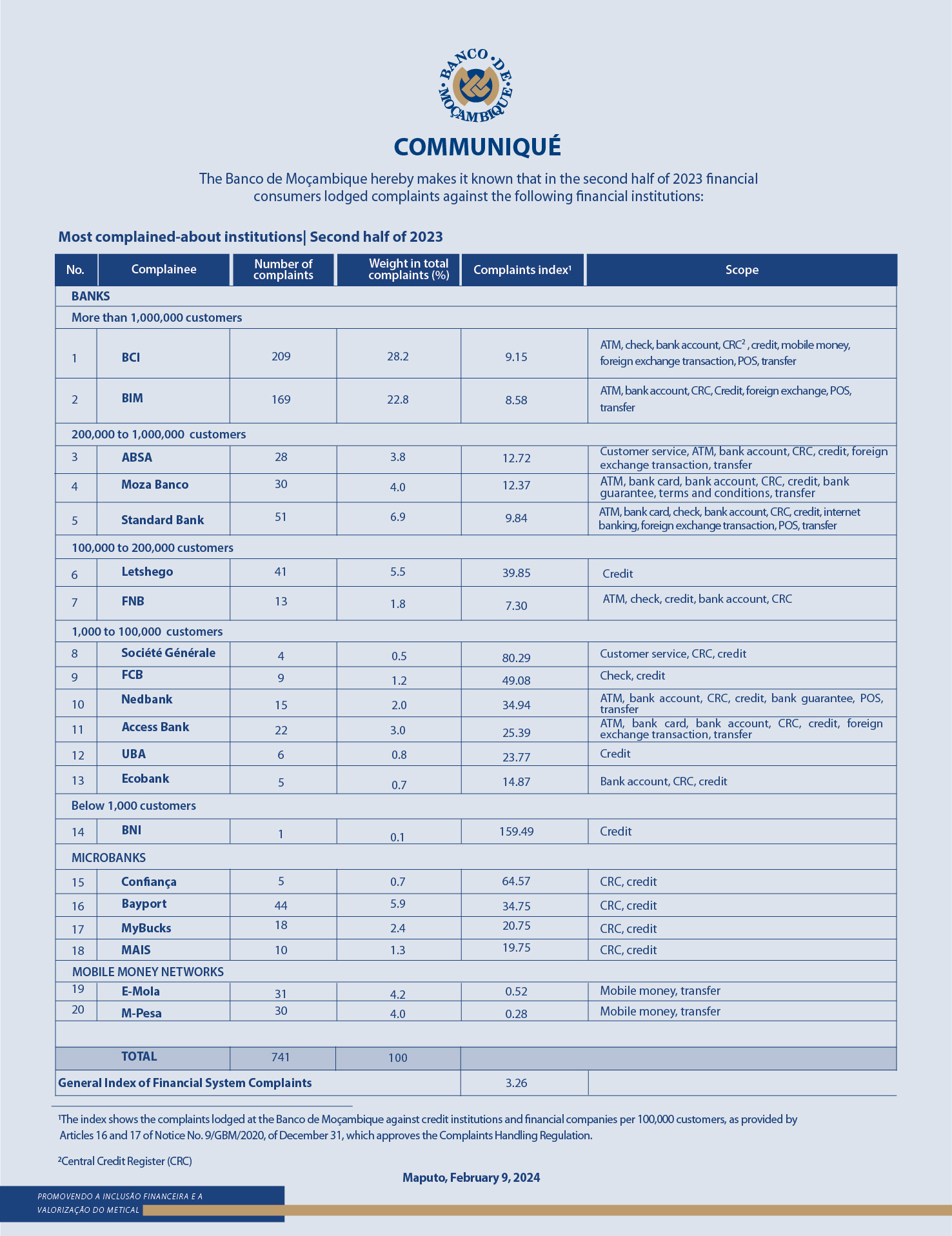 STATISTICS ON THE MOST COMPLAINED-ABOUT INSTITUTIONS - SECOND HALF OF 2023