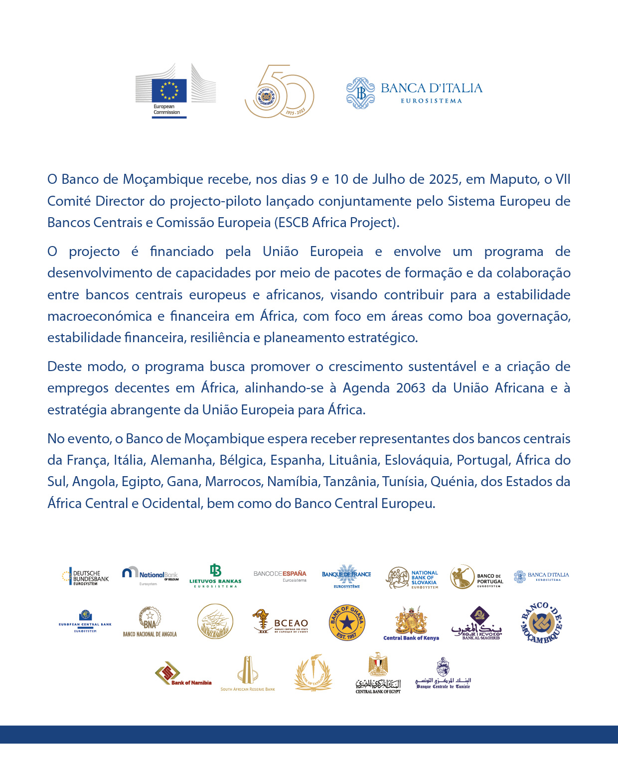 BANCO DE MOÇAMBIQUE ACOLHE VII COMITÉ DIRECTOR DO ESCB AFRICA PROJECT