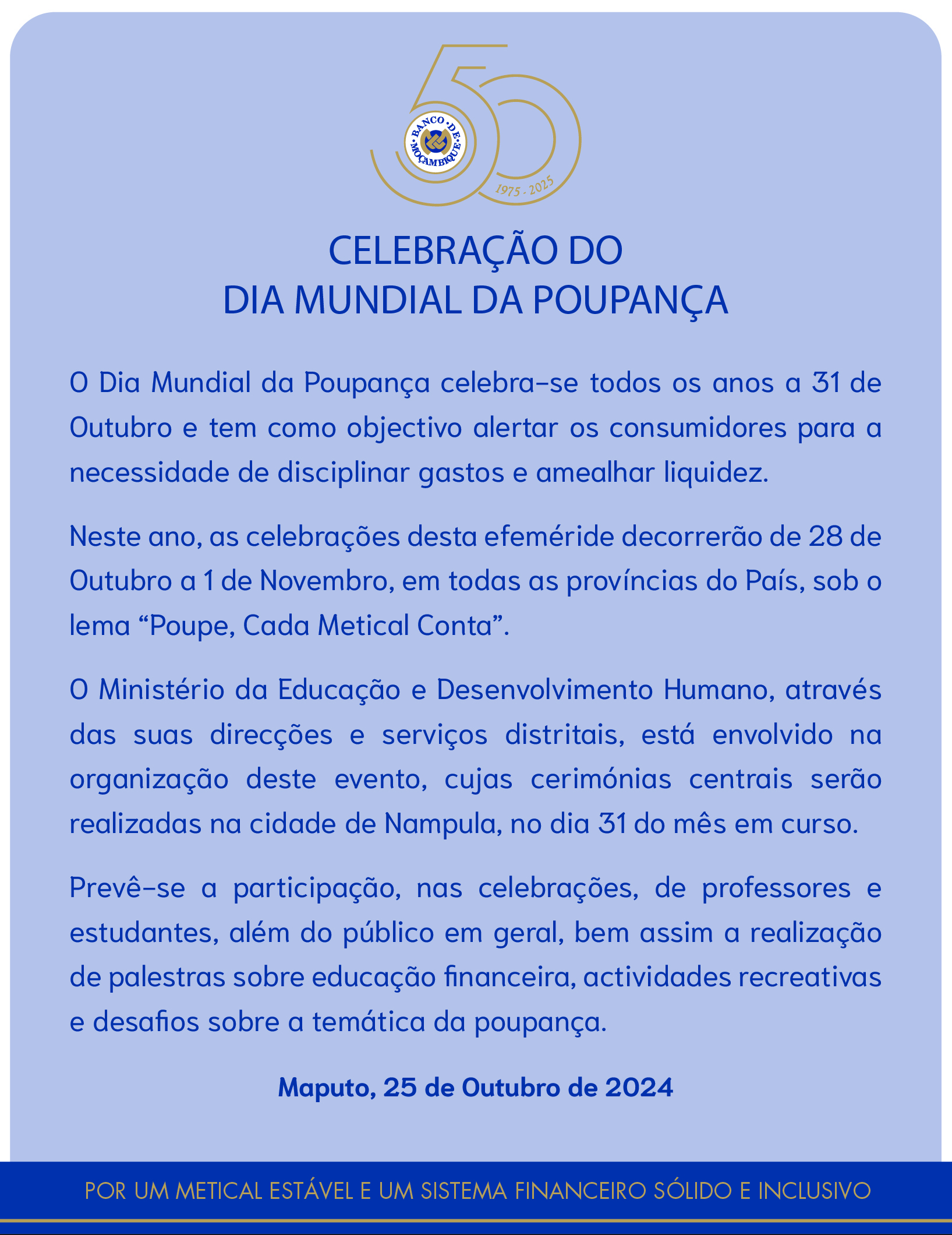 CELEBRAÇÃO DO DIA MUNDIAL DA POUPANÇA