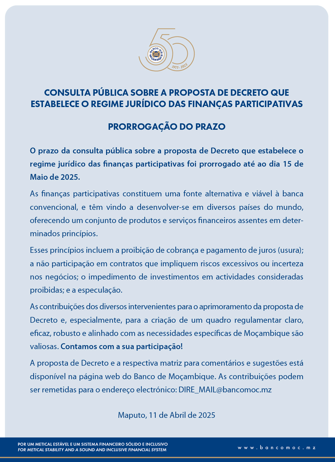 CONSULTA PÚBLICA SOBRE A PROPOSTA DE DECRETO QUE ESTABELECE O REGIME JURÍDICO DAS FINANÇAS PARTICIPATIVAS