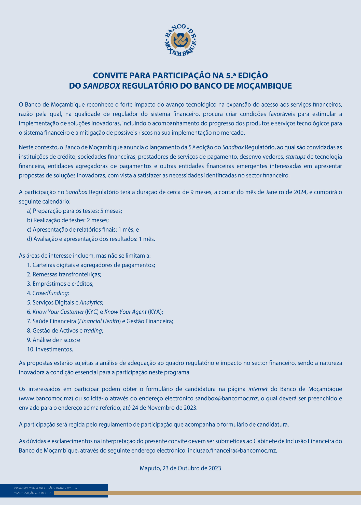 CONVITE PARA PARTICIPAÇÃO NA 5.ª EDIÇÃO DO SANDBOX REGULATÓRIO