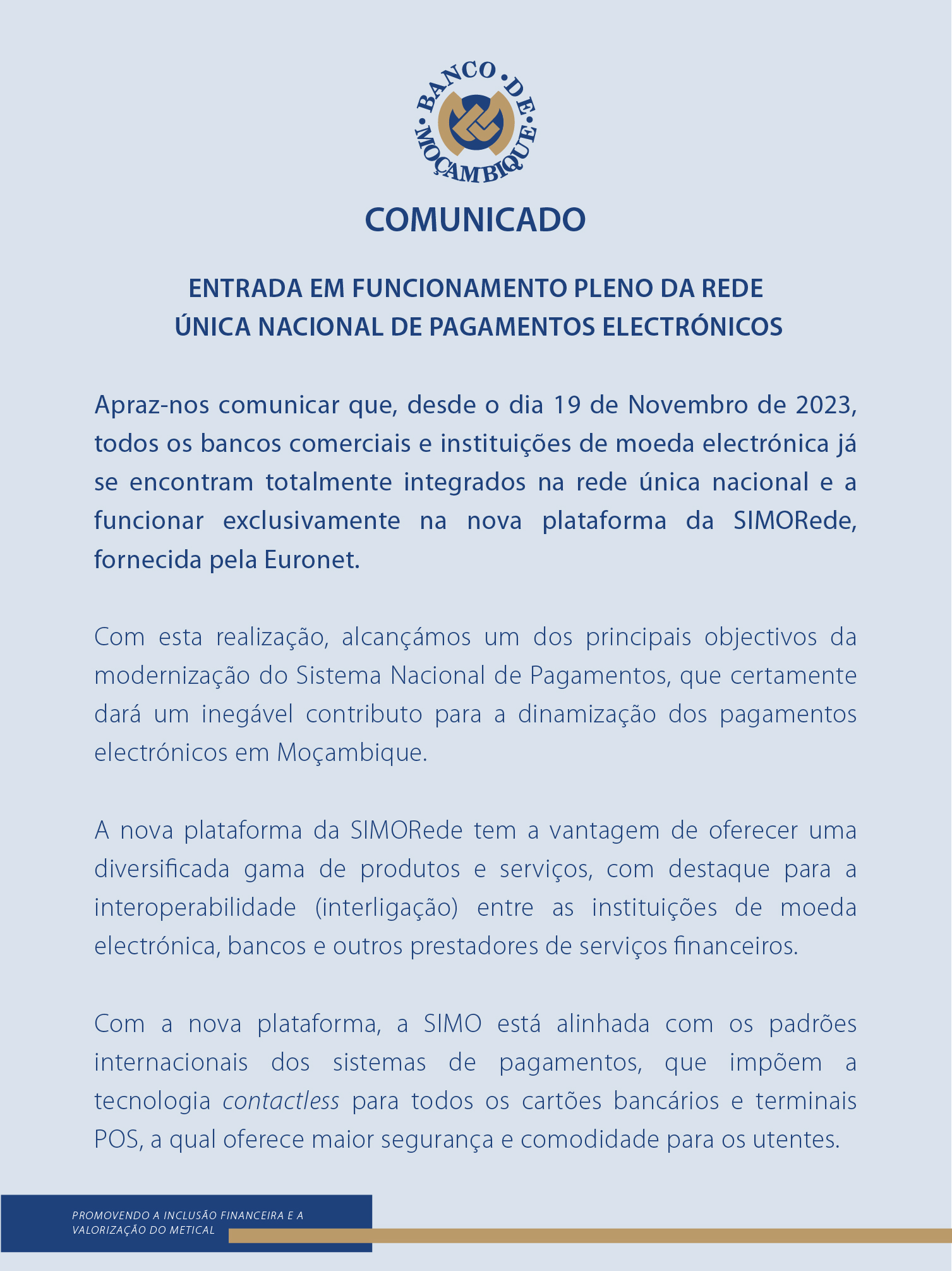 ENTRADA EM FUNCIONAMENTO PLENO DA REDE ÚNICA NACIONAL DE PAGAMENTOS ELECTRÓNICOS