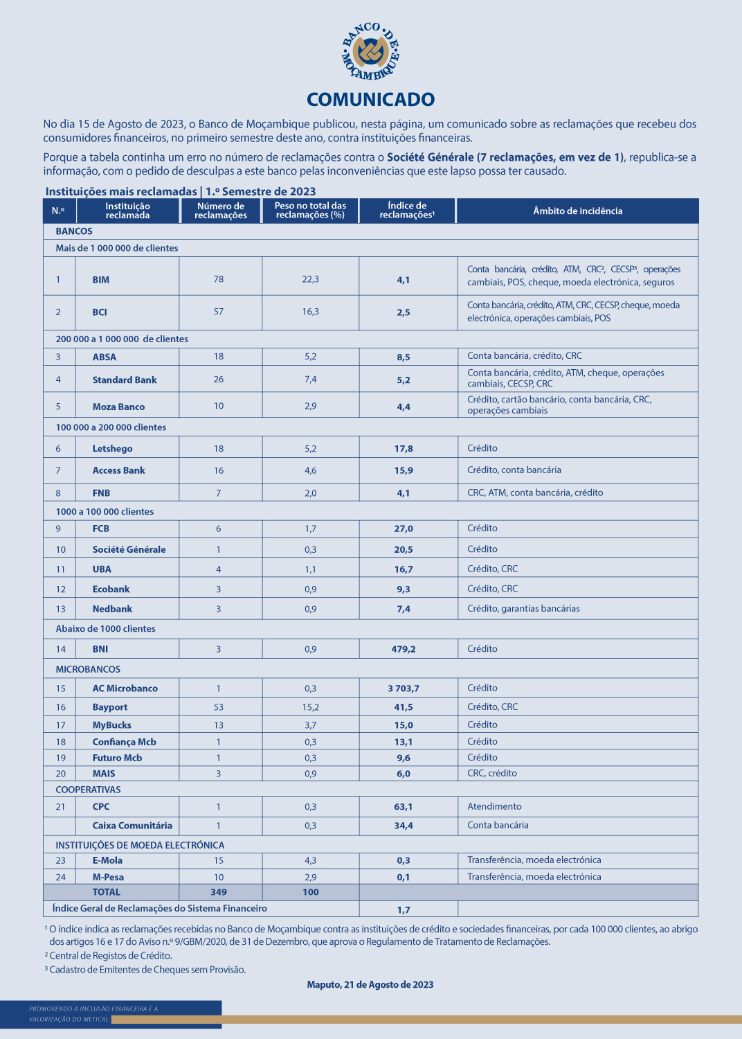 ESTATÍSTICAS DAS INSTITUIÇÕES MAIS RECLAMADAS - I SEMESTRE 2023