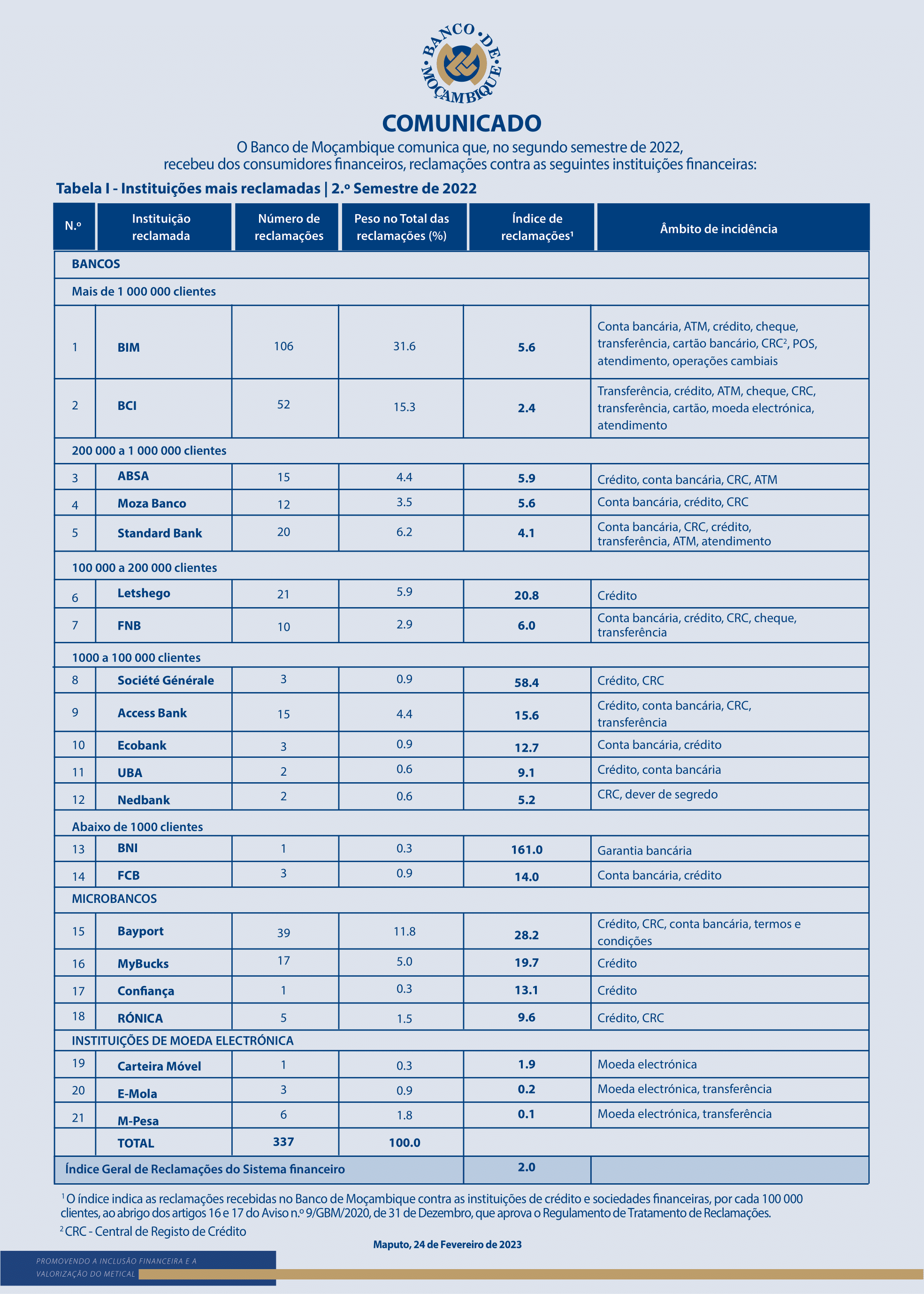 ESTATÍSTICAS DAS INSTITUIÇÕES MAIS RECLAMADAS - II SEMESTRE 2022