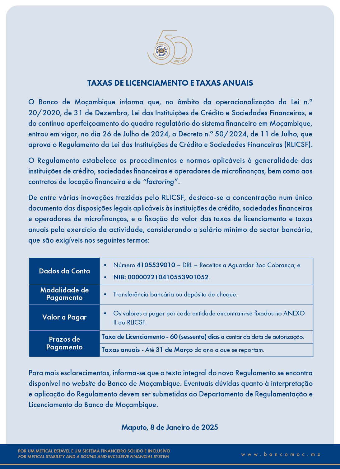 TAXAS DE LICENCIAMENTO E TAXAS ANUAIS