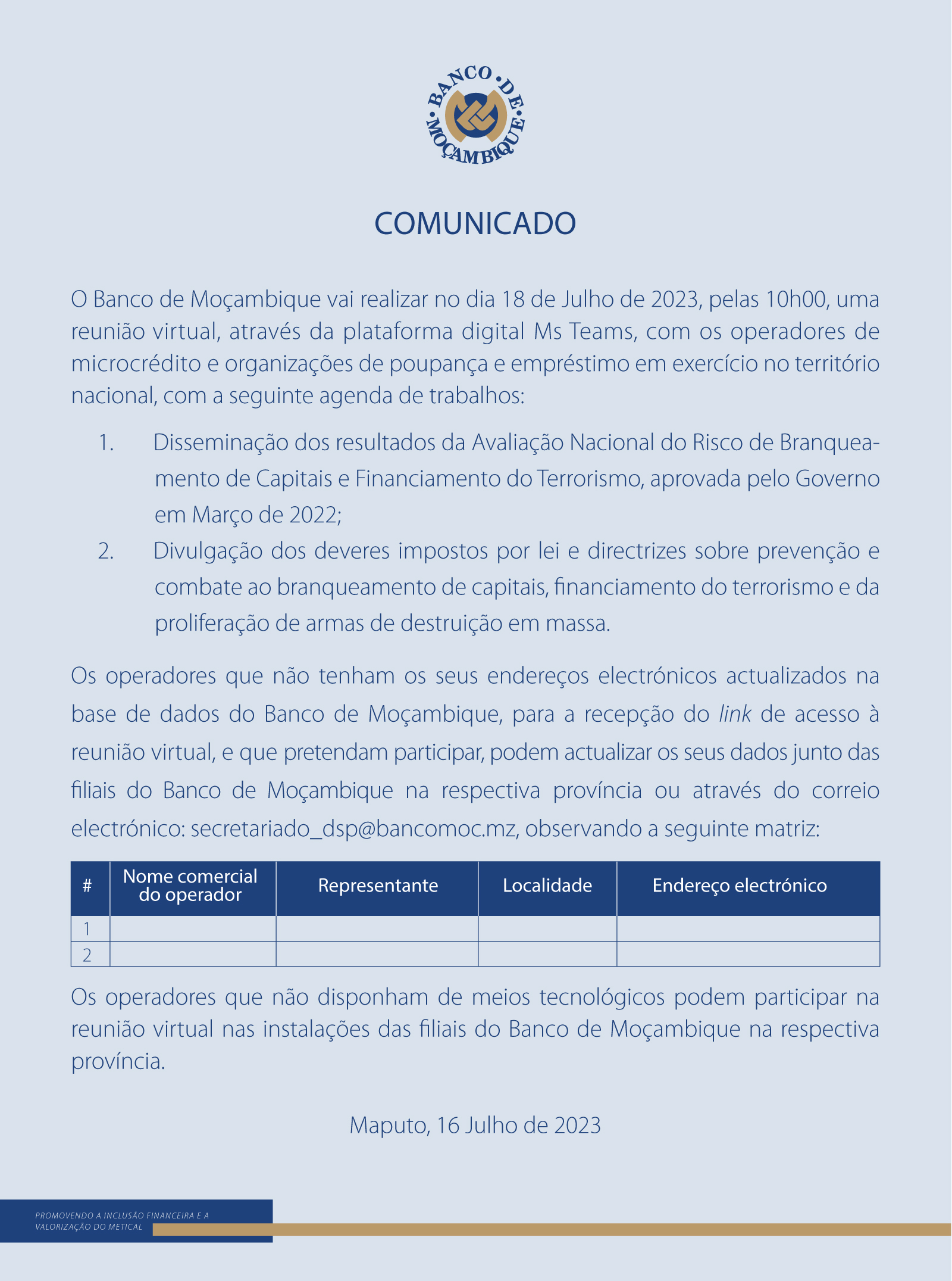 WORKSHOPS DE DISSEMINAÇÃO DOS RESULTADOS DA AVALIAÇÃO NACIONAL DE RISCOS E DE SENSIBILIZAÇÃO DO SECTOR FINANCEIRO