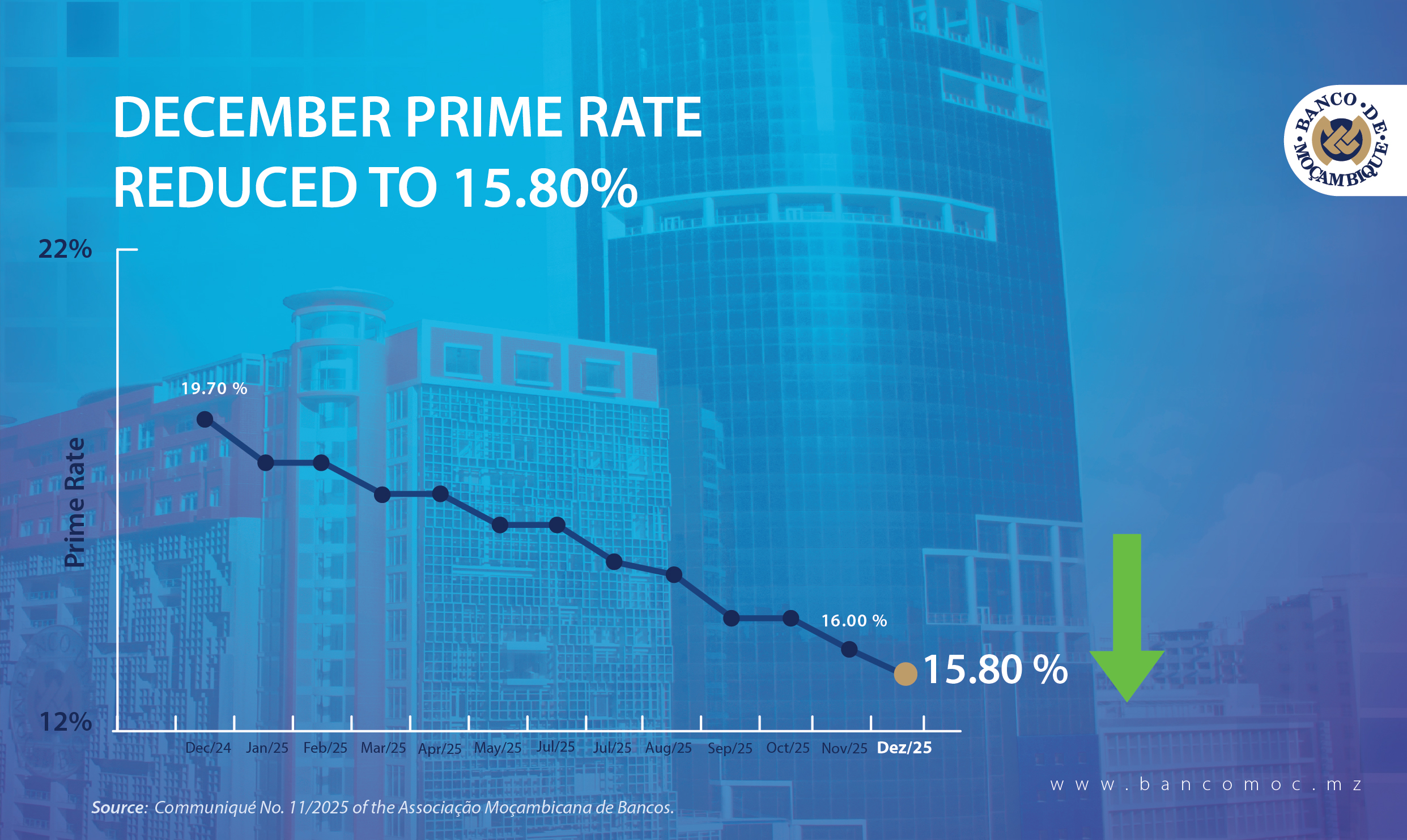 As part of implementing the Reference Rate Agreement of the Mozambican Banking System, the Mozambican Banking Association announces the reference rate, the cost premium and the prime rate for December 2025.