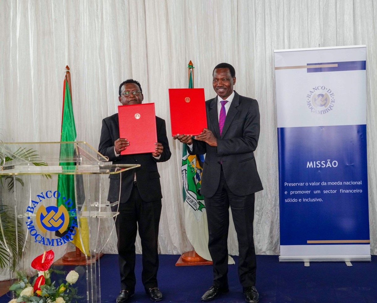 This morning, May 9, the Governor of the Banco de Moçambique (GBM), Rogério Zandamela, and the Mayor of the Tete City Council, César de Carvalho, signed a memorandum of understanding for the construction of a Metical Square in Tete city.
