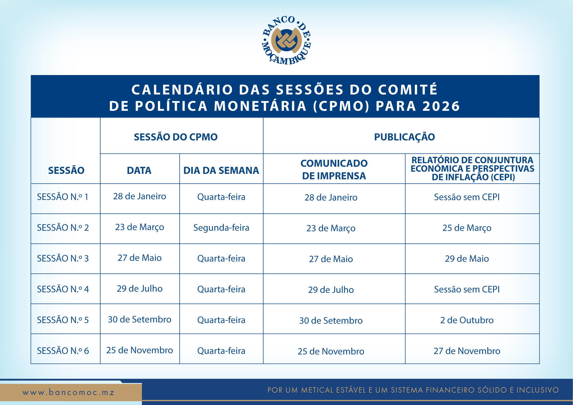 O Comité de Política Monetária (CPMO) é órgão do Banco de Moçambique responsável pela gestão e implementação da política monetária. Este orgão é composto pelo Governador, Vice-Governador e Administradores do Banco de Moçambique. O CPMO reúne-se uma vez a cada dois meses e decide sobre os níveis da taxa de juro de política monetária, designada taxa MIMO (taxa de Mercado Monetário Interbancário de Moçambique).