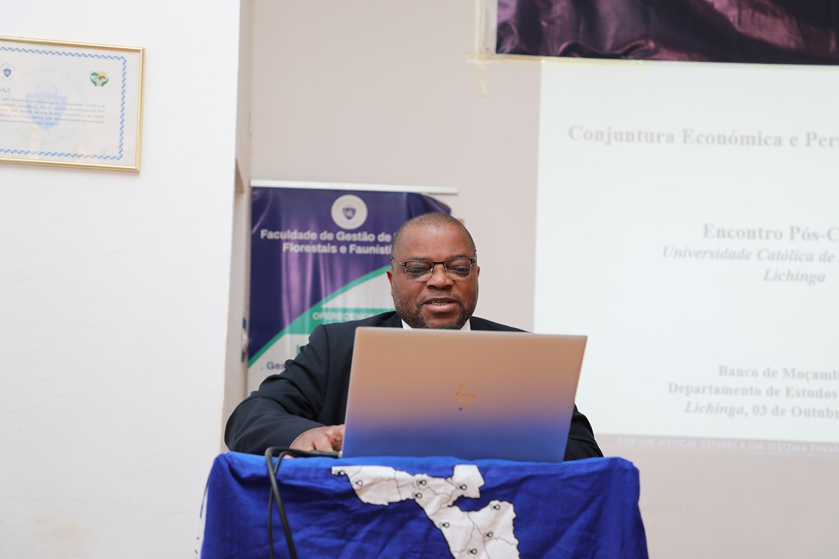 Na sua intervenção de boas-vindas, o Director da Faculdade de Gestão de Recursos Florestais e Faunístico da UCM-Lichinga, Viegas Nhenge, destacou a relevância do evento para aquela comunidade académica, tendo referido que o mesmo permitirá aos estudantes aprofundar os temas abordados durante as aulas. Adicionalmente, realçou o papel do BM na formulação de políticas que concorrem para a estabilidade macroeconómica do país.