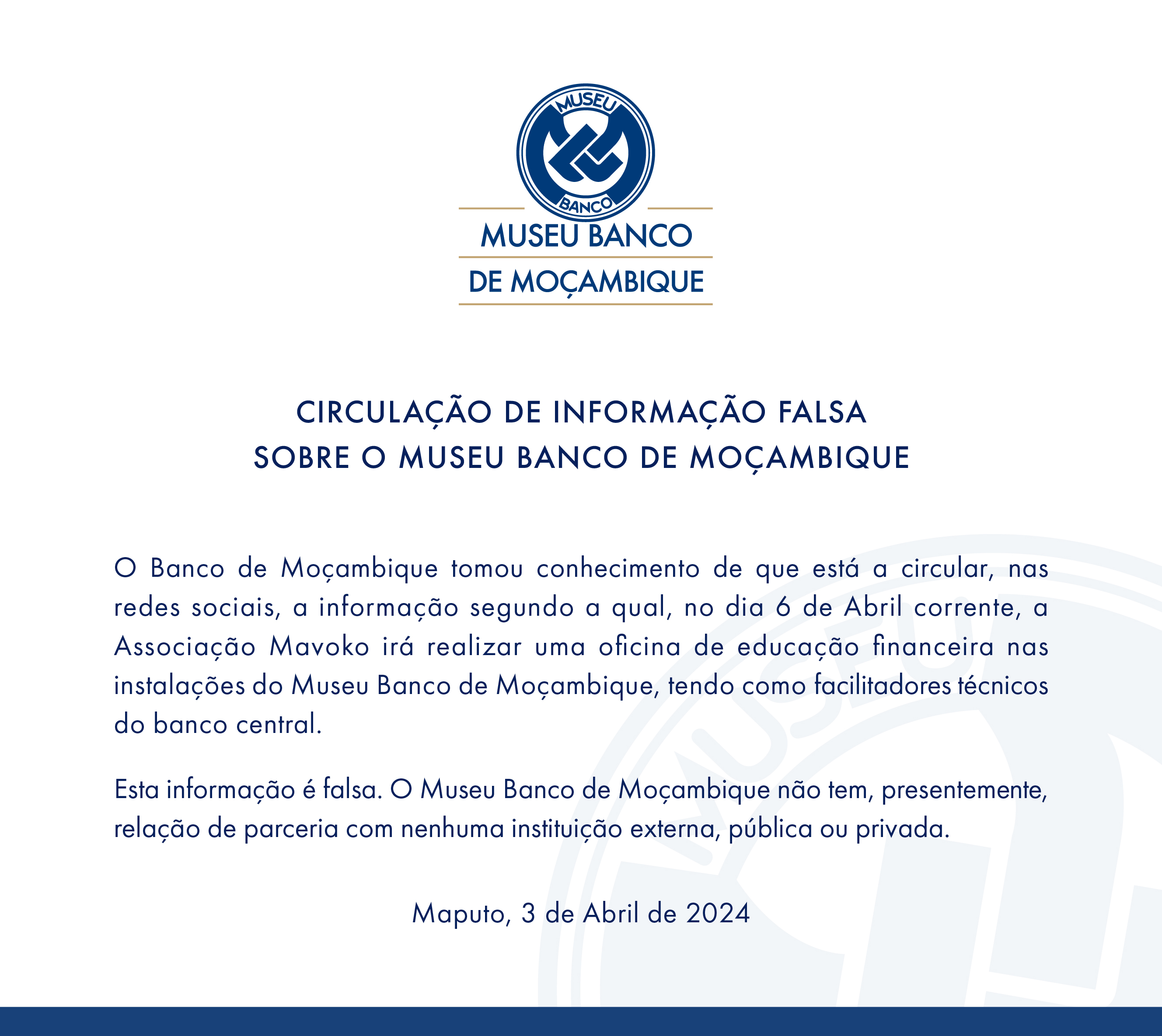 CIRCULAÇÃO DE INFORMAÇÃO FALSA SOBRE O MUSEU BANCO DE MOÇAMBIQUE