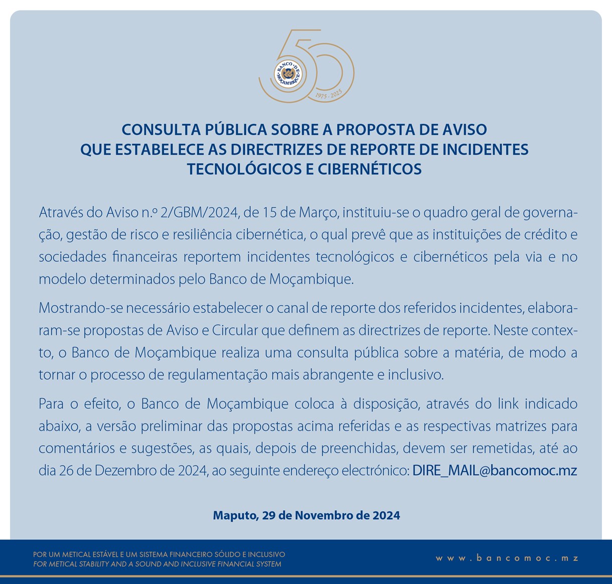 CONSULTA PÚBLICA SOBRE A PROPOSTA DE AVISO QUE ESTABELECE AS DIRECTRIZES DE REPORTE DE INCIDENTES TECNOLÓGICOS E CIBERNÉTICOS