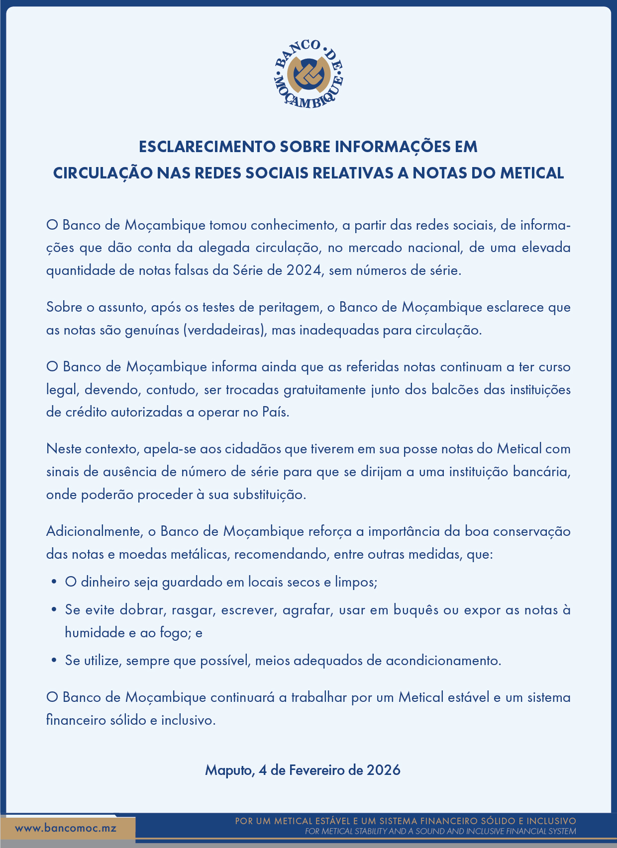 ESCLARECIMENTO SOBRE INFORMAÇÕES EM CIRCULAÇÃO NAS REDES SOCIAIS RELATIVAS A NOTAS DO METICAL