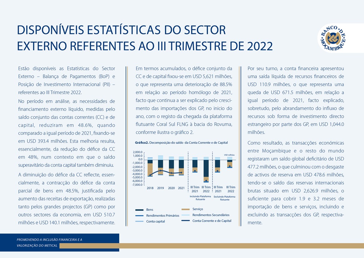 ESTATÍSTICAS DO SECTOR EXTERNO REFERENTES AO III TRIMESTRE DE 2022