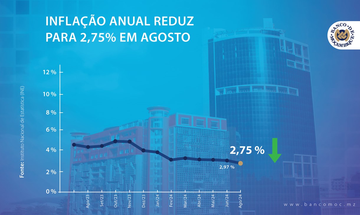 INFLAÇÃO ANUAL REDUZ PARA 2,75 % EM AGOSTO