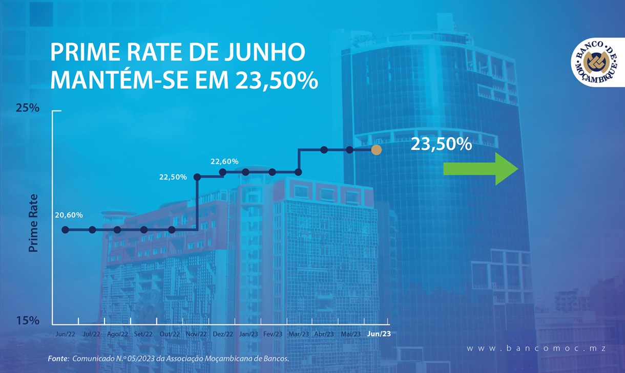 No quadro da implementação do Acordo sobre o Indexante Único do Sistema Bancário Moçambicano, a Associação Moçambicana de Bancos comunica o Indexante Único, o Prémio de Custo e a Prime Rate a vigorar no mês de Junho de 2023.