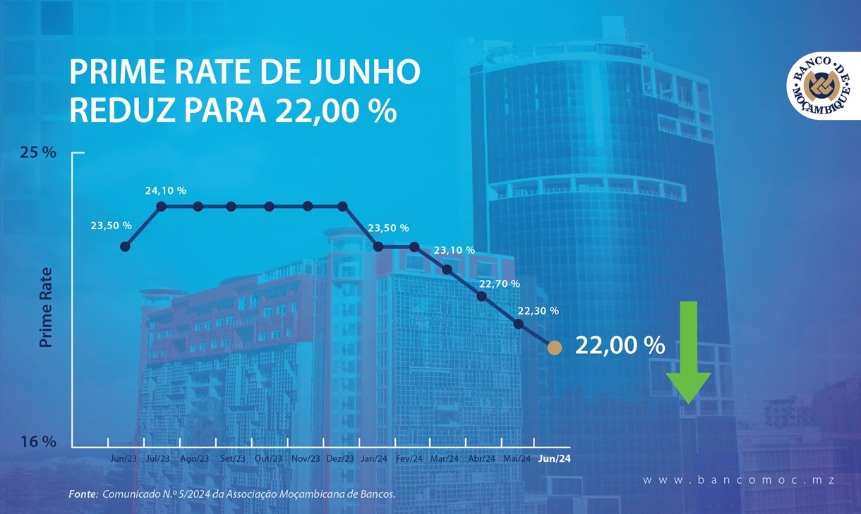 PRIME RATE DE JUNHO REDUZ PARA 22,00 %