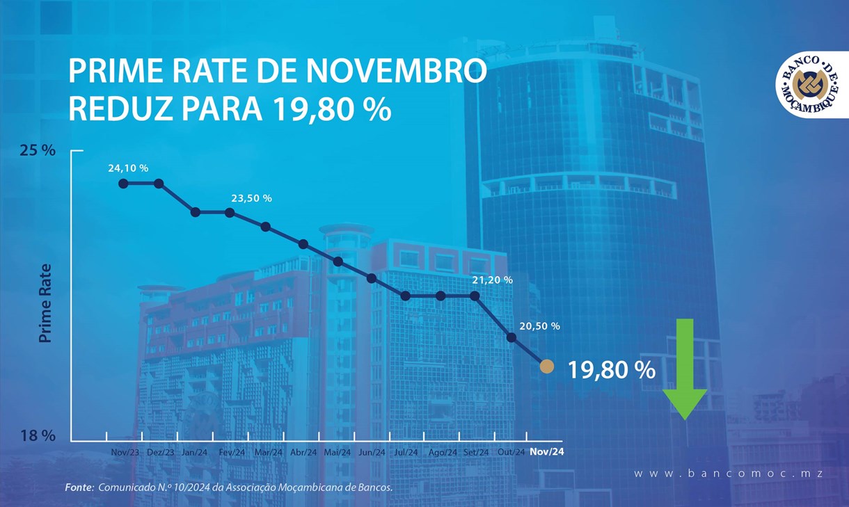 No quadro da implementação do Acordo sobre o Indexante Único do Sistema Bancário Moçambicano, a Associação Moçambicana de Bancos comunica o indexante único, o prémio de custo e a prime rate a vigorarem no mês de Novembro de 2024.