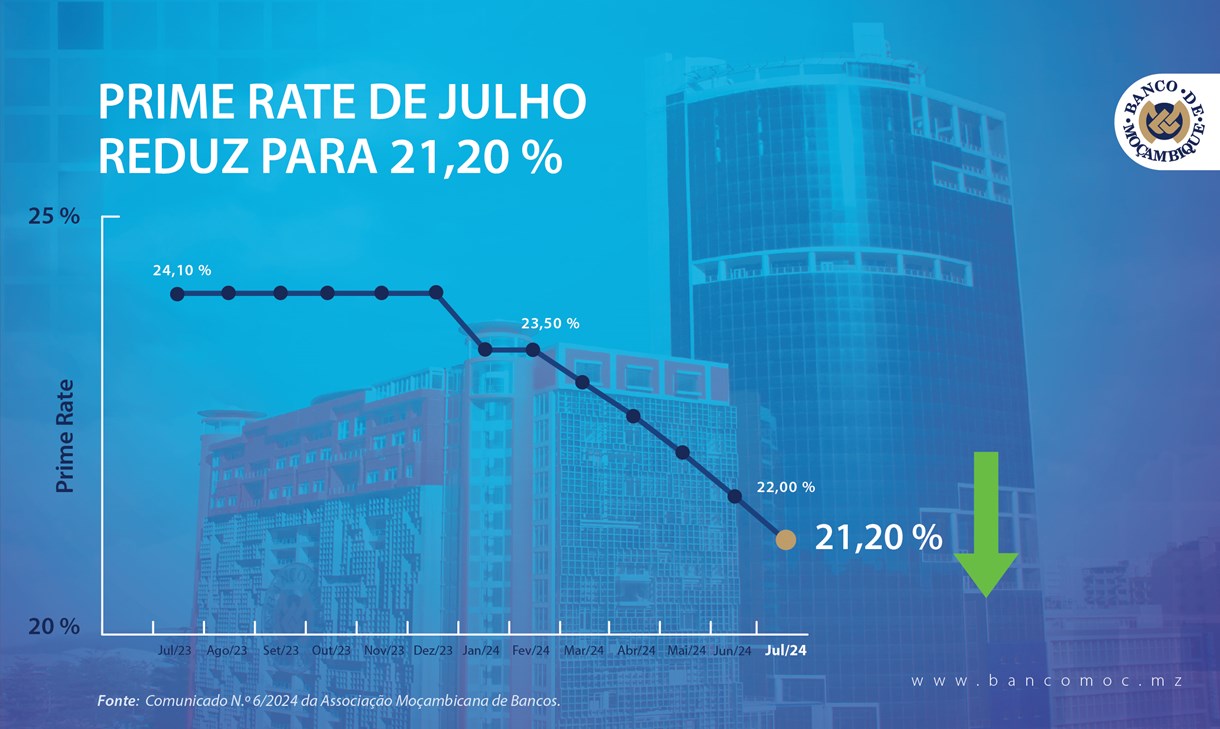 No quadro da implementação do Acordo sobre o Indexante Único do Sistema Bancário Moçambicano, a Associação Moçambicana de Bancos comunica o Indexante Único, o Prémio de Custo e a Prime Rate a vigorar no mês de Julho de 2024.