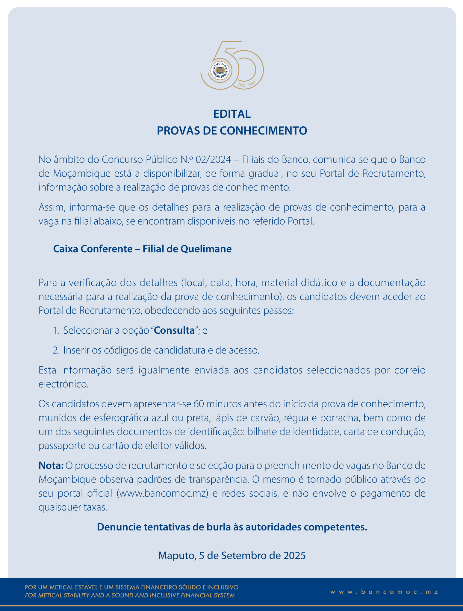 PROVAS DE CONHECIMENTO: CONCURSO PÚBLICO N.º 02/2024 – FILIAIS DO BANCO